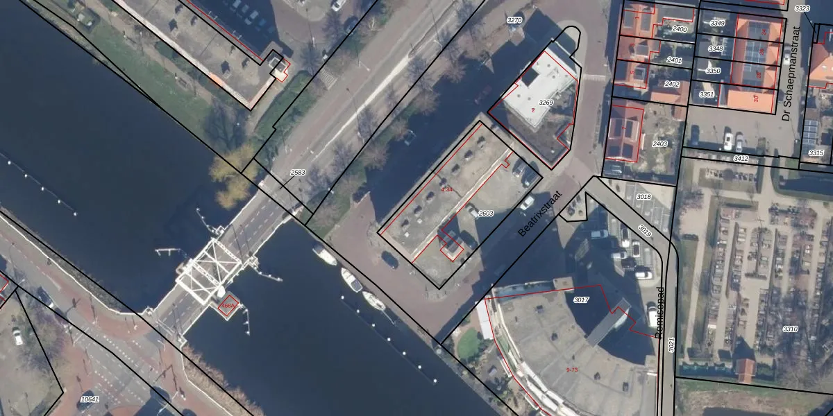 Beatrixstraat 4-e is gelegen op kadastraal perceel HLM04M2603. Deze kadastrale aanduiding is uniek en wordt gebruikt door het Kadaster om eigendomsrechten en andere zakelijke rechten vast te leggen. Het perceel maakt onderdeel uit van de kadastrale gemeente Haarlemmerliede en Spaarnwoude.