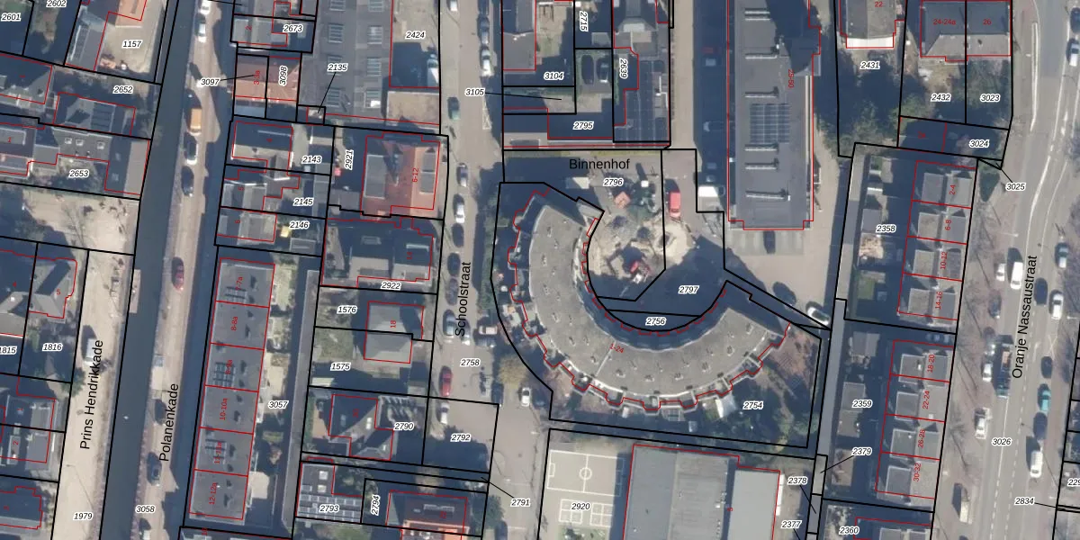 Het perceel waarop Binnenhof 3 staat heeft een oppervlakte van 1581 m². Dit is een zeer groot perceel. De perceeloppervlakte wordt geregistreerd door het Kadaster. Gedetailleerde informatie over de maten van dit perceel kunt u vinden in het rapport Kadastrale kaart met maatvoering van Binnenhof 3.
