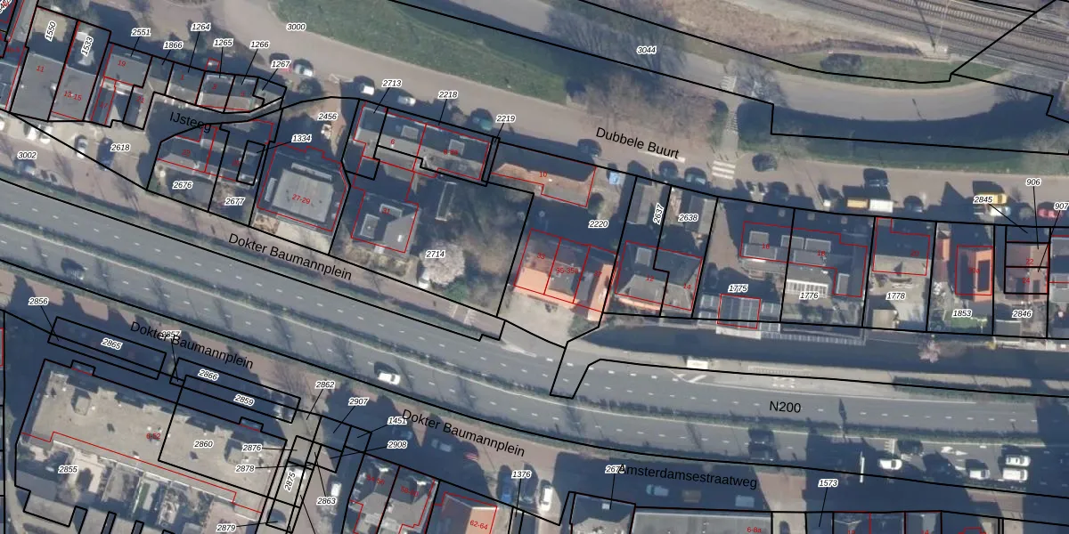 Het perceel waarop Dokter Baumannplein 33 staat heeft een oppervlakte van 672 m². Dit is een groot perceel. De perceeloppervlakte wordt geregistreerd door het Kadaster. Gedetailleerde informatie over de maten van dit perceel kunt u vinden in het rapport Kadastrale kaart met maatvoering van Dokter Baumannplein 33.