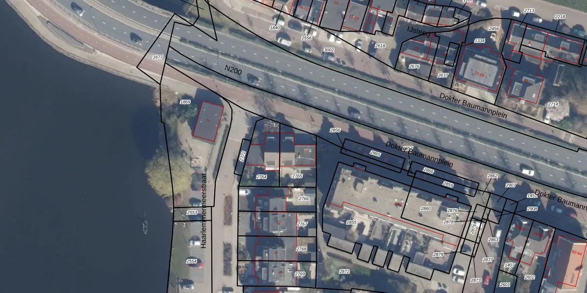 Het adres ligt op het perceel HLM04-M-2765, dat zich in de kadastrale gemeente Haarlemmerliede en Spaarnwoude bevindt. Het perceel is 256 m² groot. Dat is kleiner dan de gemiddelde perceeloppervlakte in Haarlemmerliede en Spaarnwoude, dat op 4649,47 m² ligt. Het kleinste perceel in de kadastrale gemeente is 0 m² groot. De grootste perceeloppervlakte is 50,0 ha. Dit is het enige adres dat aanwezig is op het perceel. De huidige grenzen van het perceel zijn digitaal in de Basisregistratie Kadaster (BRK) geregistreerd op 18-09-2000.