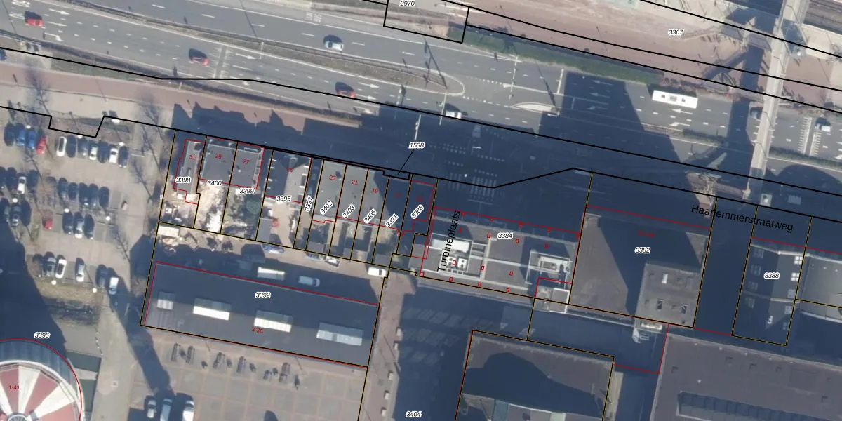 Het adres ligt op het perceel HLM04-M-3386, dat zich in de kadastrale gemeente Haarlemmerliede en Spaarnwoude bevindt. Het perceel is 106 m² groot. Dat is kleiner dan de gemiddelde perceeloppervlakte in Haarlemmerliede en Spaarnwoude, dat op 4649,47 m² ligt. De grootste perceeloppervlakte in de kadastrale gemeente is 50,0 ha. De kleinste oppervlakte bedraagt 0 m². Op het perceel bevinden zich geen andere adressen. In de Basisregistratie Kadaster (BRK) werden de grenzen van het perceel geregistreerd op 13-11-2019.