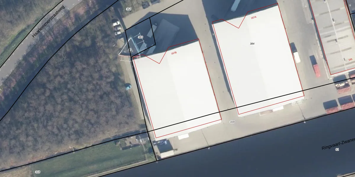 Haarlemmerstraatweg 167-B is gelegen op kadastraal perceel HLM04K384. Deze kadastrale aanduiding is uniek en wordt gebruikt door het Kadaster om eigendomsrechten en andere zakelijke rechten vast te leggen. Het perceel maakt onderdeel uit van de kadastrale gemeente Haarlemmerliede en Spaarnwoude.