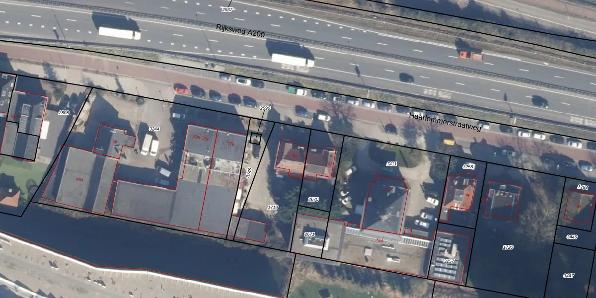 Haarlemmerstraatweg 57 is gelegen op kadastraal perceel HLM04M1718. Deze kadastrale aanduiding is uniek en wordt gebruikt door het Kadaster om eigendomsrechten en andere zakelijke rechten vast te leggen. Het perceel maakt onderdeel uit van de kadastrale gemeente Haarlemmerliede en Spaarnwoude.