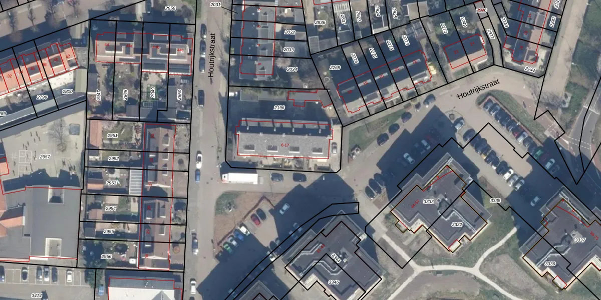 Houtrijkstraat 14 is gelegen op kadastraal perceel HLM04M2196. Deze kadastrale aanduiding is uniek en wordt gebruikt door het Kadaster om eigendomsrechten en andere zakelijke rechten vast te leggen. Het perceel maakt onderdeel uit van de kadastrale gemeente Haarlemmerliede en Spaarnwoude.