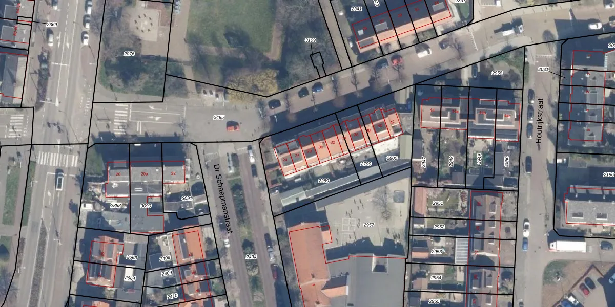 Julianastraat 28 is gelegen op kadastraal perceel HLM04M2289. Deze kadastrale aanduiding is uniek en wordt gebruikt door het Kadaster om eigendomsrechten en andere zakelijke rechten vast te leggen. Het perceel maakt onderdeel uit van de kadastrale gemeente Haarlemmerliede en Spaarnwoude.