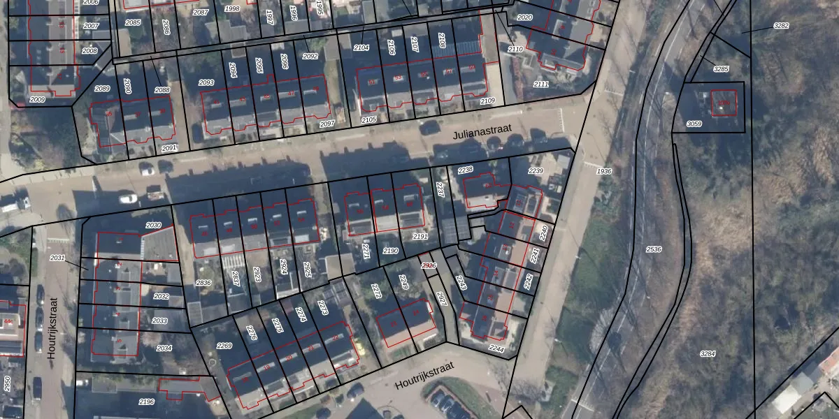 Het perceel waarop Julianastraat 60 staat heeft een oppervlakte van 181 m². Dit is een middelgroot perceel. De perceeloppervlakte wordt geregistreerd door het Kadaster. Gedetailleerde informatie over de maten van dit perceel kunt u vinden in het rapport Kadastrale kaart met maatvoering van Julianastraat 60.