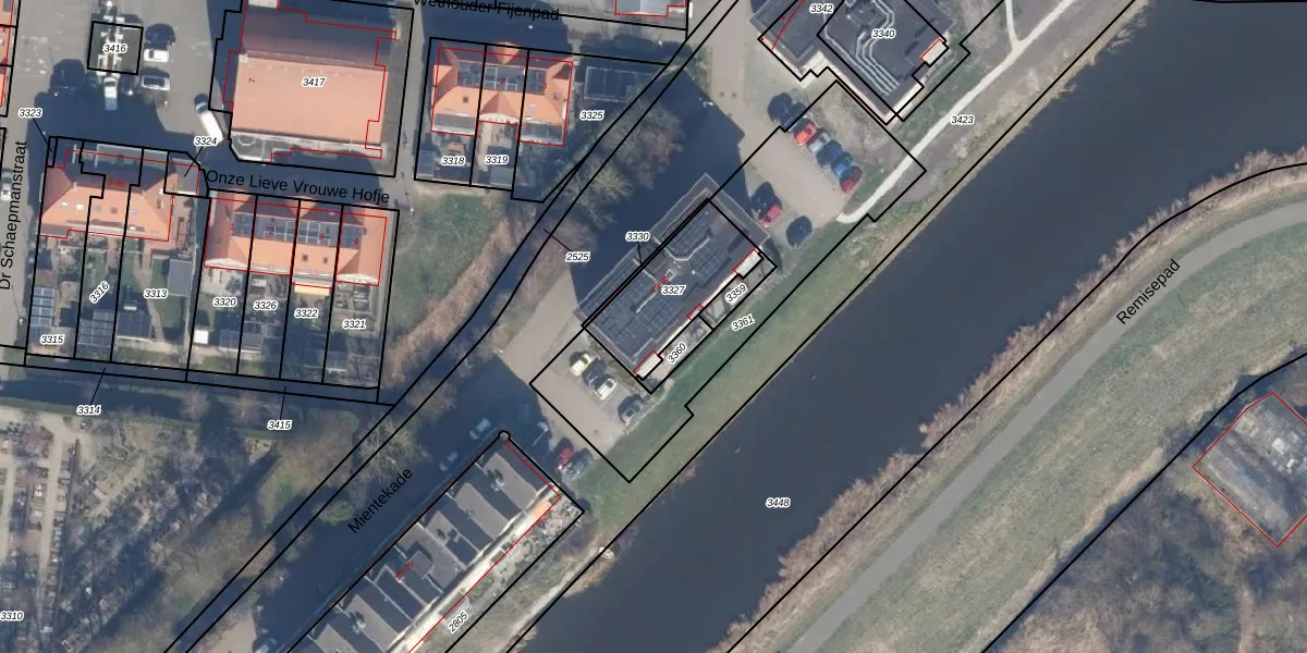 Het perceel waarop Mientekade 23 staat heeft een oppervlakte van 310 m². Dit is een groot perceel. De perceeloppervlakte wordt geregistreerd door het Kadaster. Gedetailleerde informatie over de maten van dit perceel kunt u vinden in het rapport Kadastrale kaart met maatvoering van Mientekade 23.