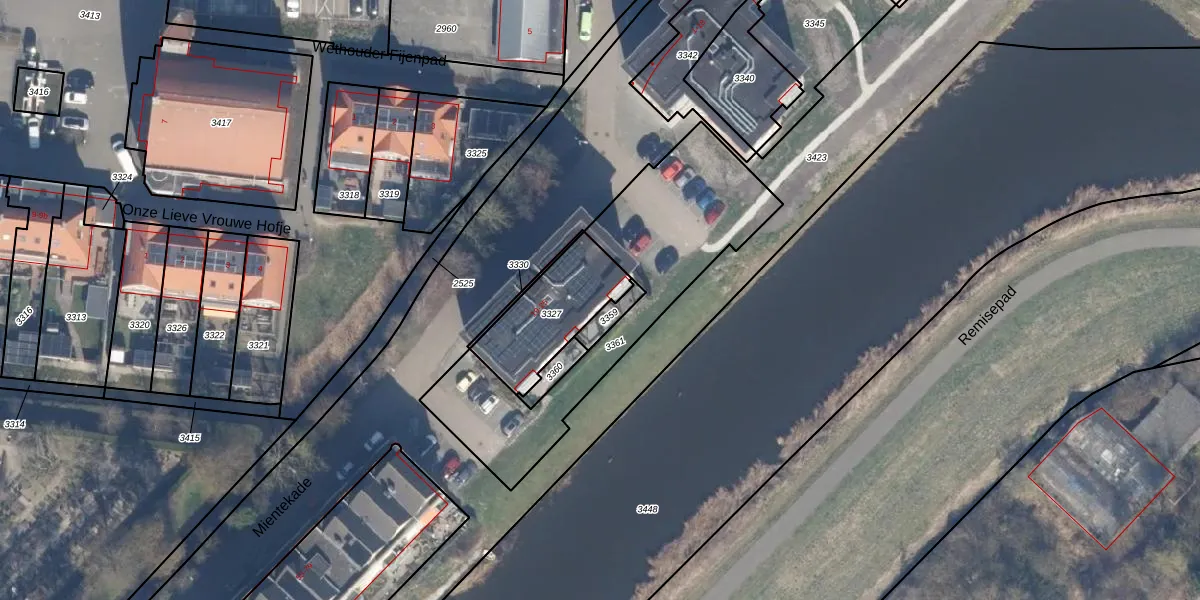 Het perceel waarop Mientekade 25 staat heeft een oppervlakte van 310 m². Dit is een groot perceel. De perceeloppervlakte wordt geregistreerd door het Kadaster. Gedetailleerde informatie over de maten van dit perceel kunt u vinden in het rapport Kadastrale kaart met maatvoering van Mientekade 25.