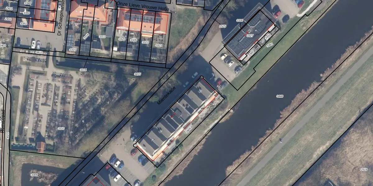 Het perceel waarop Mientekade 56 staat heeft een oppervlakte van 869 m². Dit is een groot perceel. De perceeloppervlakte wordt geregistreerd door het Kadaster. Gedetailleerde informatie over de maten van dit perceel kunt u vinden in het rapport Kadastrale kaart met maatvoering van Mientekade 56.