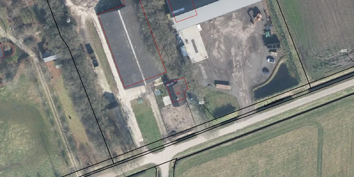 Het perceel waarop Lendeweg 8-B staat heeft een oppervlakte van 3,2 ha. Dit is een zeer groot perceel. De perceeloppervlakte wordt geregistreerd door het Kadaster. Gedetailleerde informatie over de maten van dit perceel kunt u vinden in het rapport Kadastrale kaart met maatvoering van Lendeweg 8-B.