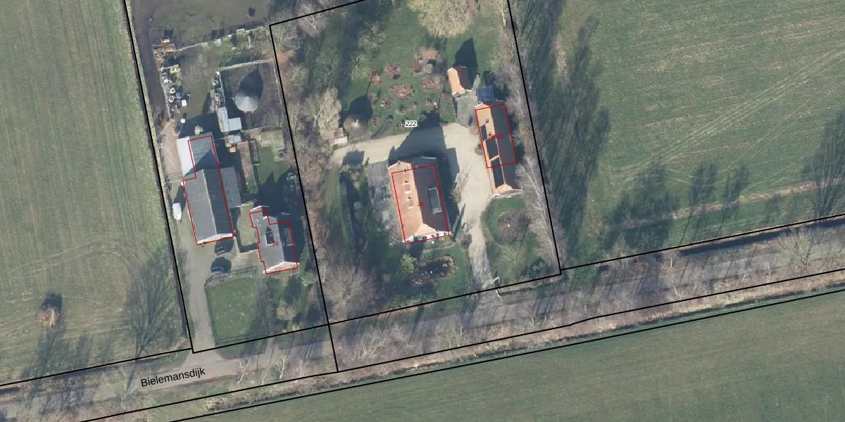 Het perceel waarop Bielemansdijk 28 staat heeft een oppervlakte van 4165 m². Dit is een zeer groot perceel. De perceeloppervlakte wordt geregistreerd door het Kadaster. Gedetailleerde informatie over de maten van dit perceel kunt u vinden in het rapport Kadastrale kaart met maatvoering van Bielemansdijk 28.