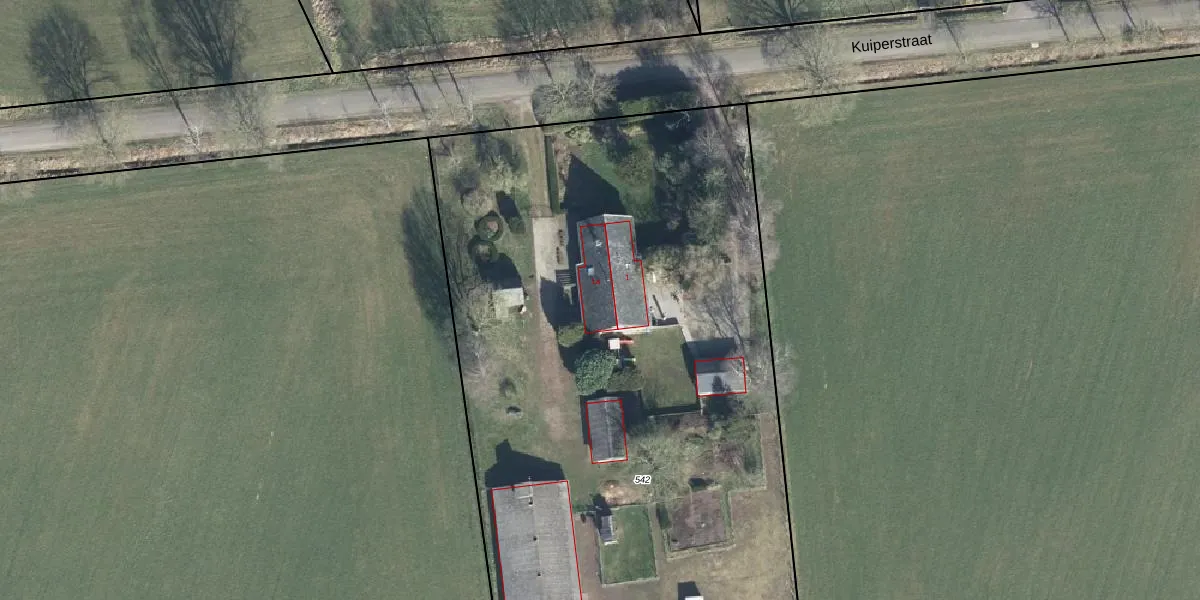 Het perceel waarop Kuiperstraat 1-a staat heeft een oppervlakte van 4830 m². Dit is een zeer groot perceel. De perceeloppervlakte wordt geregistreerd door het Kadaster. Gedetailleerde informatie over de maten van dit perceel kunt u vinden in het rapport Kadastrale kaart met maatvoering van Kuiperstraat 1-a.