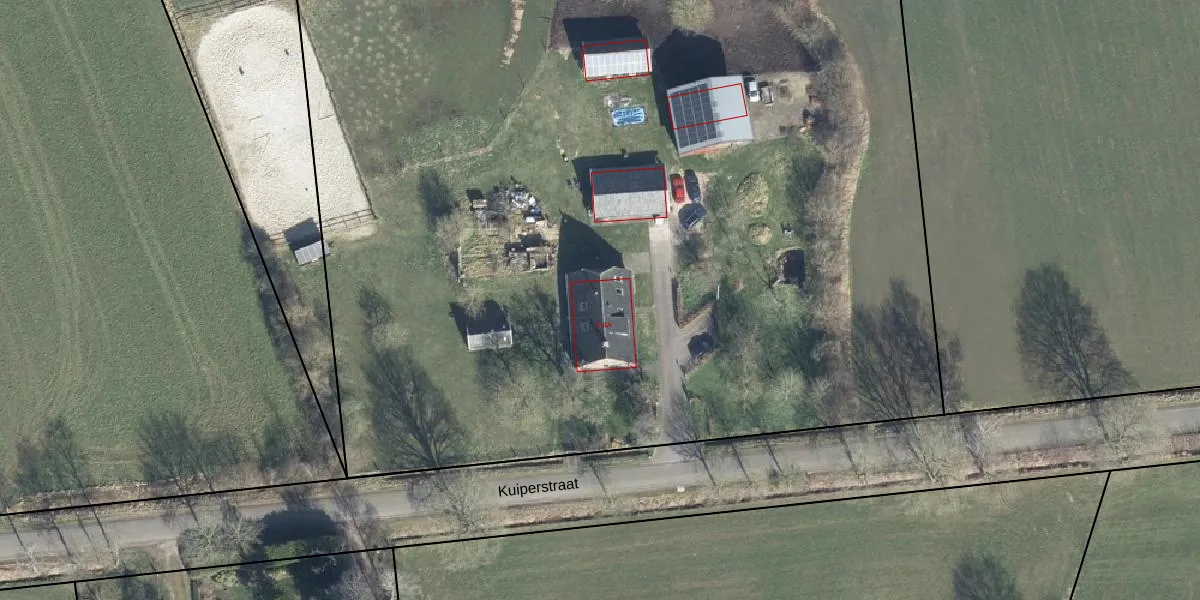 Het perceel waarop Kuiperstraat 4 staat heeft een oppervlakte van 1,8 ha. Dit is een zeer groot perceel. De perceeloppervlakte wordt geregistreerd door het Kadaster. Gedetailleerde informatie over de maten van dit perceel kunt u vinden in het rapport Kadastrale kaart met maatvoering van Kuiperstraat 4.
