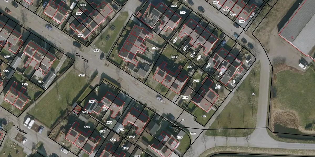 Het perceel waarop De Stins 27 staat heeft een oppervlakte van 479 m². Dit is een groot perceel. De perceeloppervlakte wordt geregistreerd door het Kadaster. Gedetailleerde informatie over de maten van dit perceel kunt u vinden in het rapport Kadastrale kaart met maatvoering van De Stins 27.