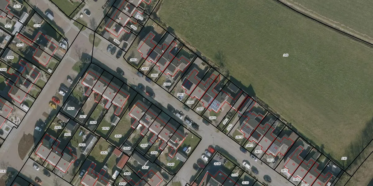 Het perceel waarop De Stringen 9 staat heeft een oppervlakte van 238 m². Dit is een middelgroot perceel. De perceeloppervlakte wordt geregistreerd door het Kadaster. Gedetailleerde informatie over de maten van dit perceel kunt u vinden in het rapport Kadastrale kaart met maatvoering van De Stringen 9.