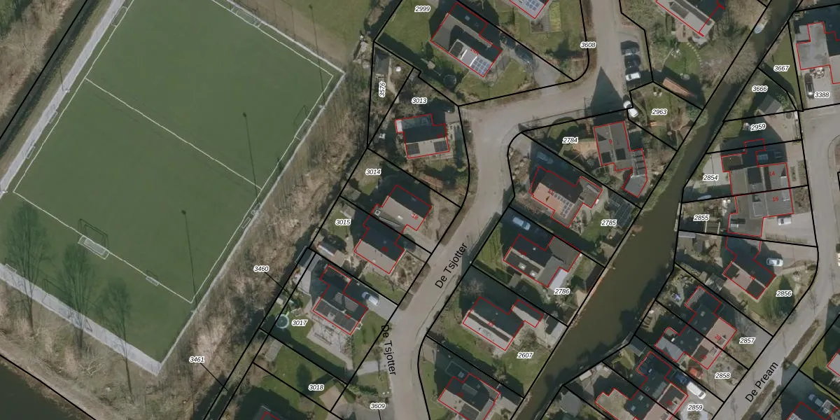 Het perceel waarop De Tsjotter 18 staat heeft een oppervlakte van 343 m². Dit is een groot perceel. De perceeloppervlakte wordt geregistreerd door het Kadaster. Gedetailleerde informatie over de maten van dit perceel kunt u vinden in het rapport Kadastrale kaart met maatvoering van De Tsjotter 18.
