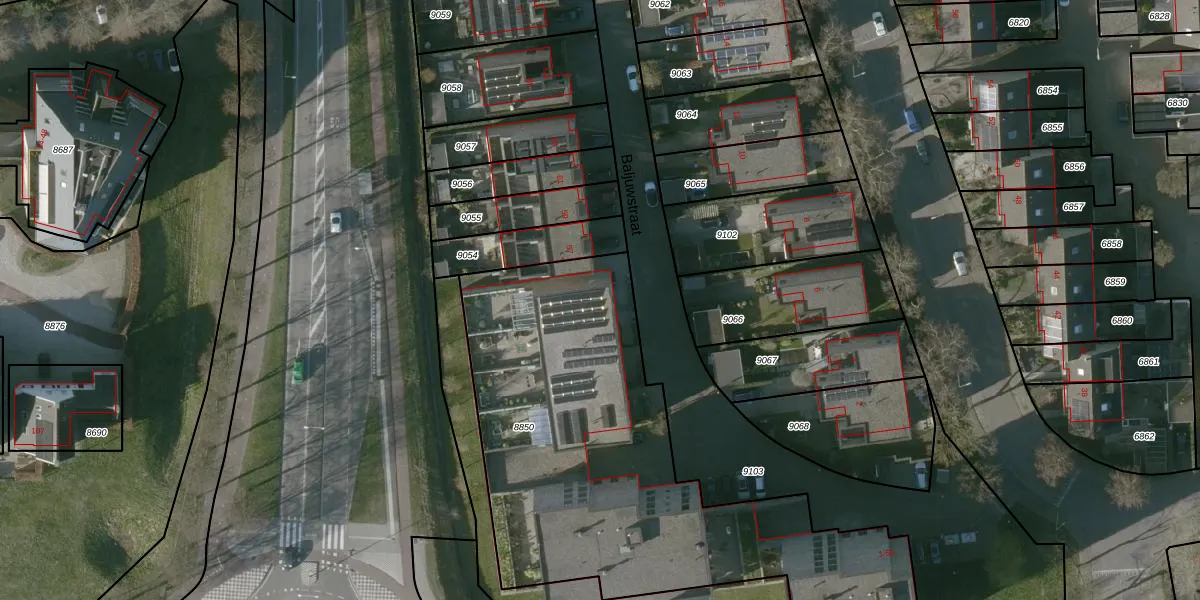 Het perceel waarop Baljuwstraat 55 staat heeft een oppervlakte van 2275 m². Dit is een zeer groot perceel. De perceeloppervlakte wordt geregistreerd door het Kadaster. Gedetailleerde informatie over de maten van dit perceel kunt u vinden in het rapport Kadastrale kaart met maatvoering van Baljuwstraat 55.