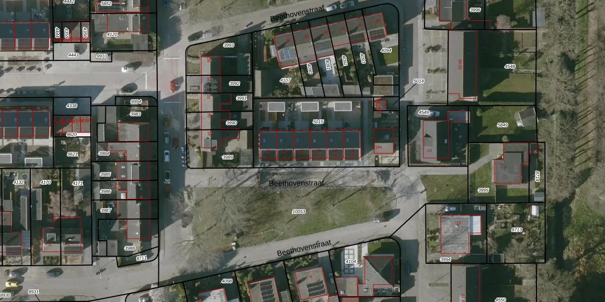 Het perceel waarop Beethovenstraat 22 staat heeft een oppervlakte van 1059 m². Dit is een zeer groot perceel. De perceeloppervlakte wordt geregistreerd door het Kadaster. Gedetailleerde informatie over de maten van dit perceel kunt u vinden in het rapport Kadastrale kaart met maatvoering van Beethovenstraat 22.