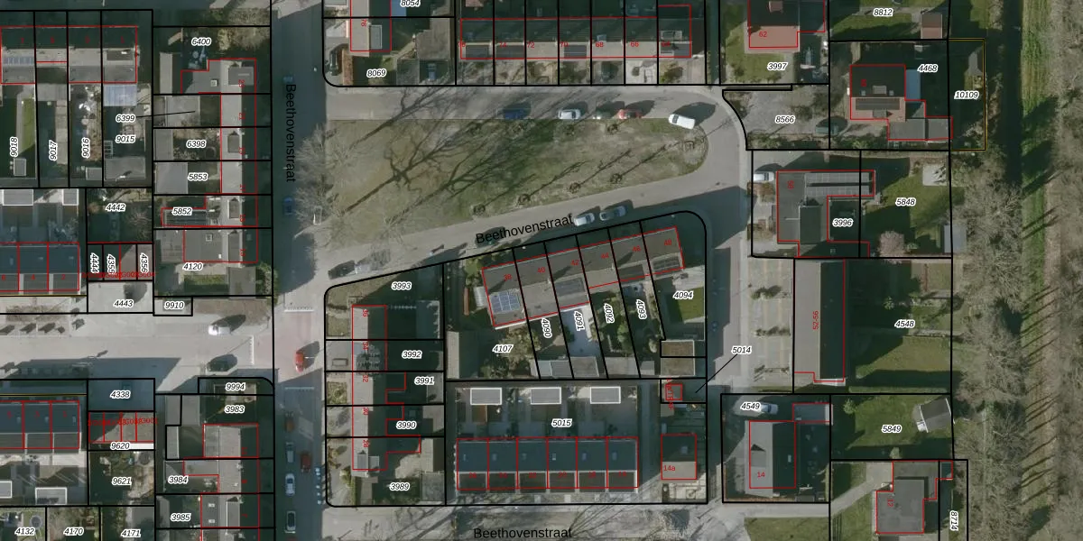 Het perceel waarop Beethovenstraat 40 staat heeft een oppervlakte van 155 m². Dit is een middelgroot perceel. De perceeloppervlakte wordt geregistreerd door het Kadaster. Gedetailleerde informatie over de maten van dit perceel kunt u vinden in het rapport Kadastrale kaart met maatvoering van Beethovenstraat 40.