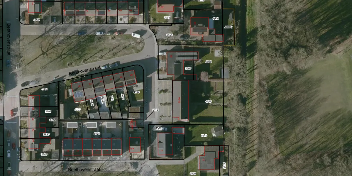 Het perceel waarop Beethovenstraat 52-G020 staat heeft een oppervlakte van 725 m². Dit is een groot perceel. De perceeloppervlakte wordt geregistreerd door het Kadaster. Gedetailleerde informatie over de maten van dit perceel kunt u vinden in het rapport Kadastrale kaart met maatvoering van Beethovenstraat 52-G020.