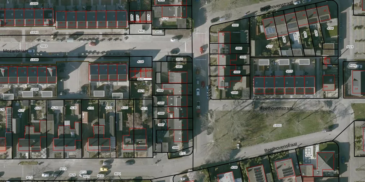 Beethovenstraat 9 is gelegen op kadastraal perceel HSR00C3984. Deze kadastrale aanduiding is uniek en wordt gebruikt door het Kadaster om eigendomsrechten en andere zakelijke rechten vast te leggen. Het perceel maakt onderdeel uit van de kadastrale gemeente Halsteren.