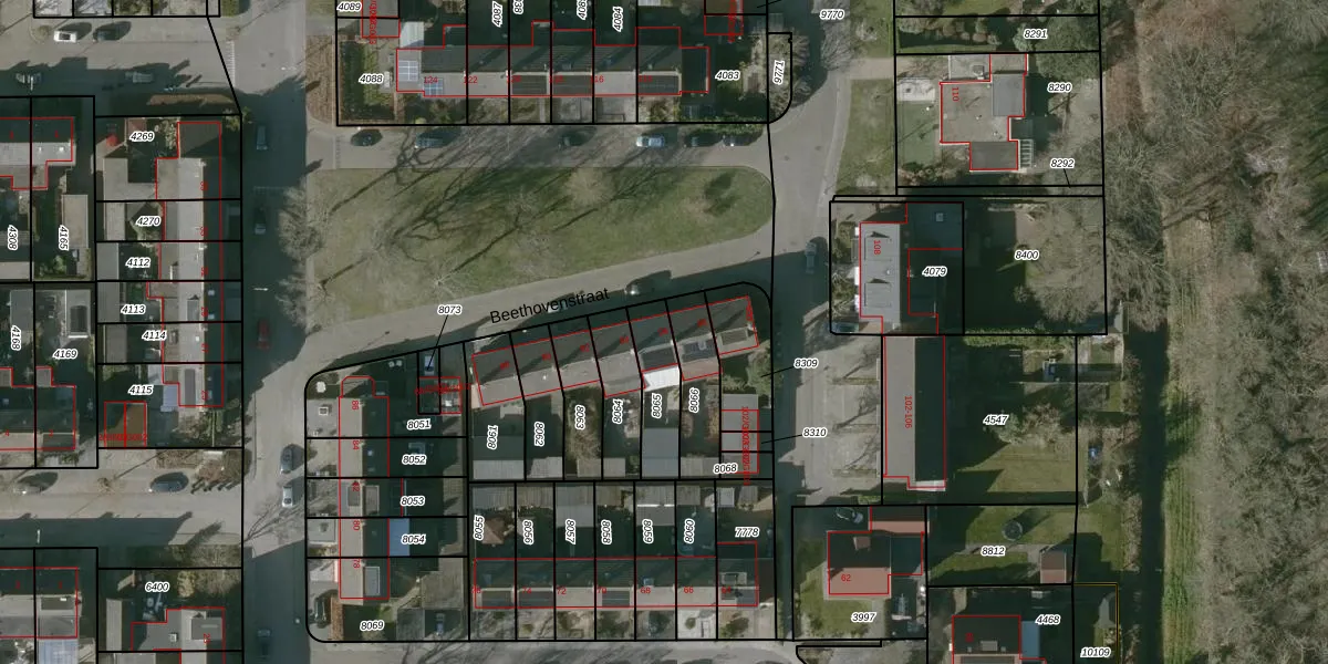 Gebruik de zoekbalk of klik op een perceel voor informatie over de adressen binnen dit perceel.