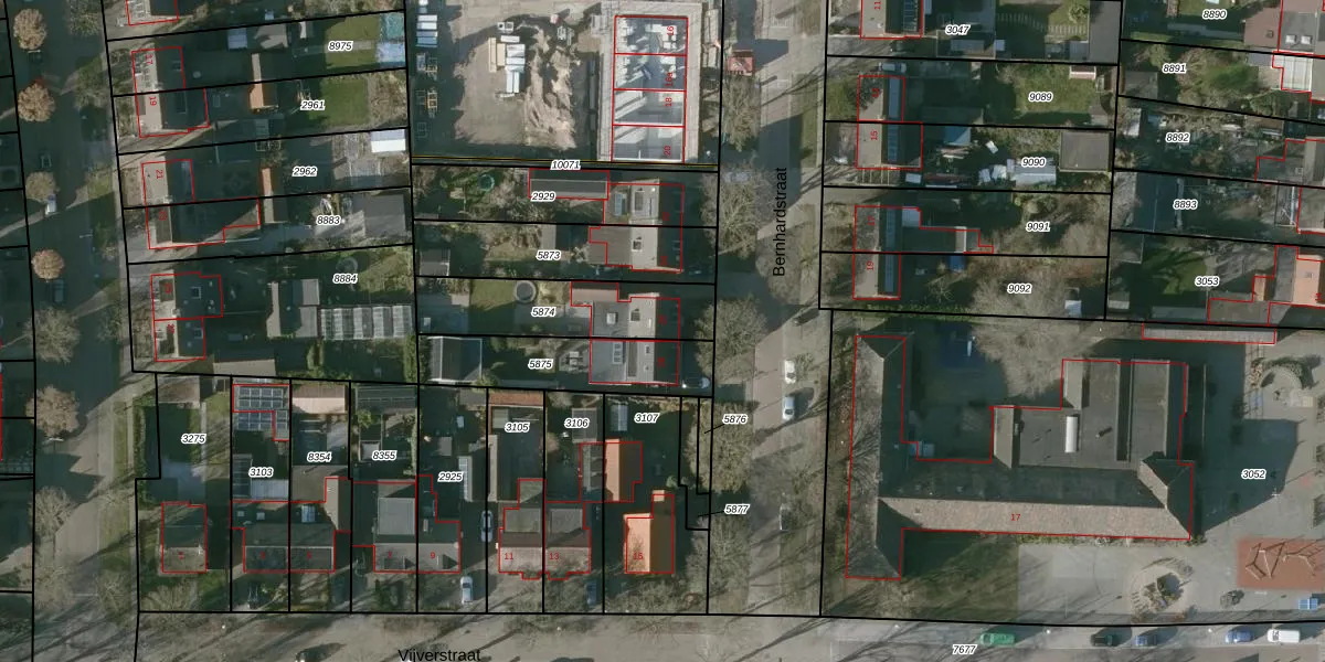 Het perceel waarop Bernhardstraat 26 staat heeft een oppervlakte van 385 m². Dit is een groot perceel. De perceeloppervlakte wordt geregistreerd door het Kadaster. Gedetailleerde informatie over de maten van dit perceel kunt u vinden in het rapport Kadastrale kaart met maatvoering van Bernhardstraat 26.