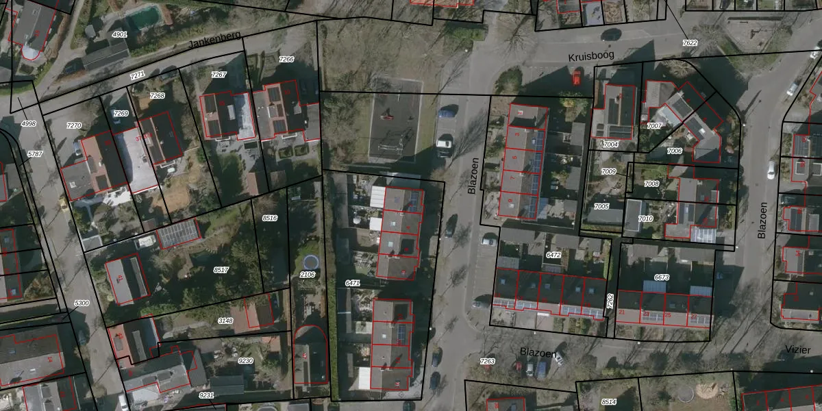 Het perceel waarop Blazoen 2 staat heeft een oppervlakte van 1413 m². Dit is een zeer groot perceel. De perceeloppervlakte wordt geregistreerd door het Kadaster. Gedetailleerde informatie over de maten van dit perceel kunt u vinden in het rapport Kadastrale kaart met maatvoering van Blazoen 2.