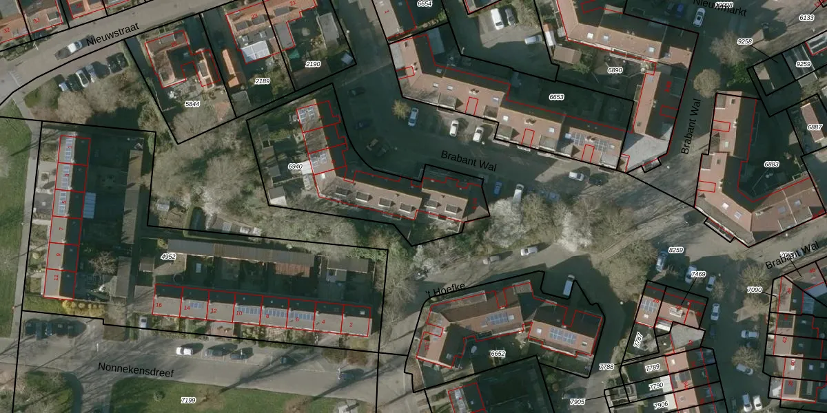 Het perceel waarop Brabant Wal 20 staat heeft een oppervlakte van 1050 m². Dit is een zeer groot perceel. De perceeloppervlakte wordt geregistreerd door het Kadaster. Gedetailleerde informatie over de maten van dit perceel kunt u vinden in het rapport Kadastrale kaart met maatvoering van Brabant Wal 20.