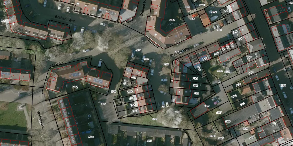 Het perceel waarop Brabant Wal 30 staat heeft een oppervlakte van 95 m². Dit is een klein perceel. De perceeloppervlakte wordt geregistreerd door het Kadaster. Gedetailleerde informatie over de maten van dit perceel kunt u vinden in het rapport Kadastrale kaart met maatvoering van Brabant Wal 30.