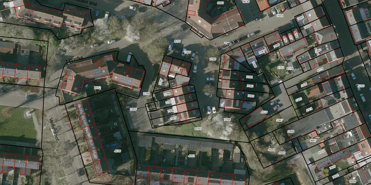 Gebruik de zoekbalk of klik op een perceel voor informatie over de adressen binnen dit perceel.
