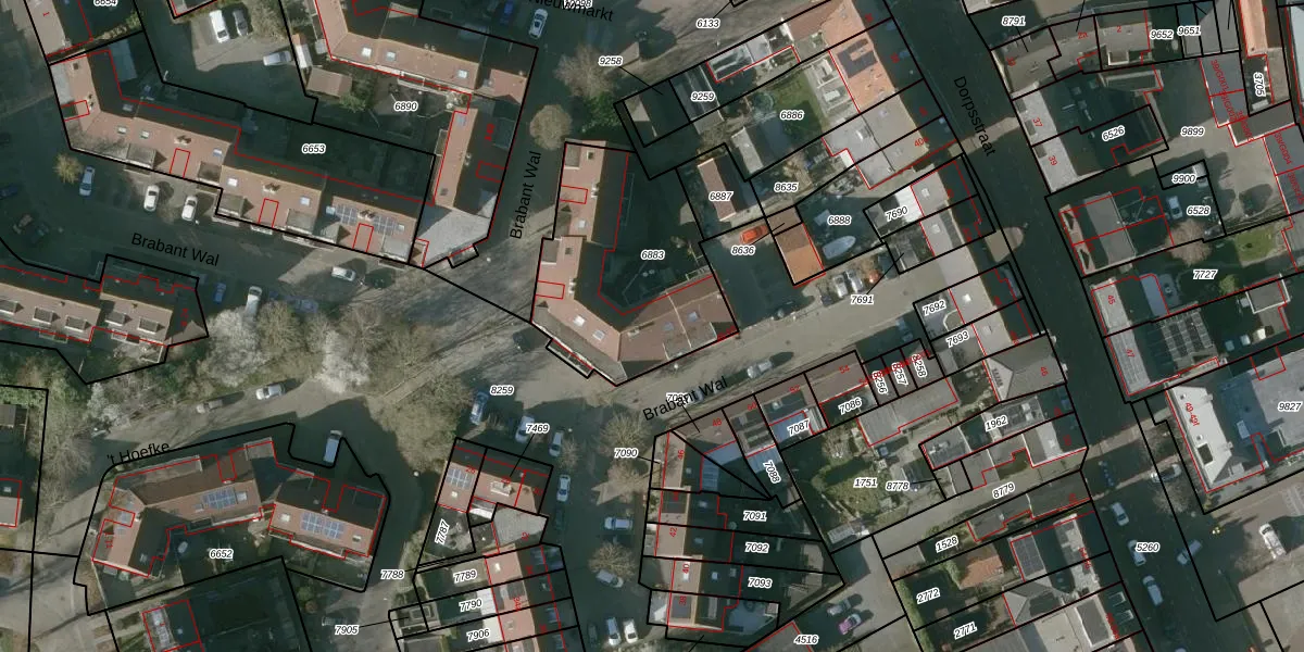 Het perceel waarop Brabant Wal 65 staat heeft een oppervlakte van 788 m². Dit is een groot perceel. De perceeloppervlakte wordt geregistreerd door het Kadaster. Gedetailleerde informatie over de maten van dit perceel kunt u vinden in het rapport Kadastrale kaart met maatvoering van Brabant Wal 65.