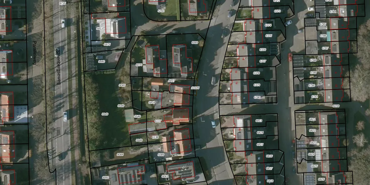 Gebruik de zoekbalk of klik op een perceel voor informatie over de adressen binnen dit perceel.