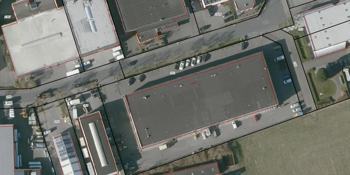 Het perceel waarop Canadaweg 12 staat heeft een oppervlakte van 5586 m². Dit is een zeer groot perceel. De perceeloppervlakte wordt geregistreerd door het Kadaster. Gedetailleerde informatie over de maten van dit perceel kunt u vinden in het rapport Kadastrale kaart met maatvoering van Canadaweg 12.