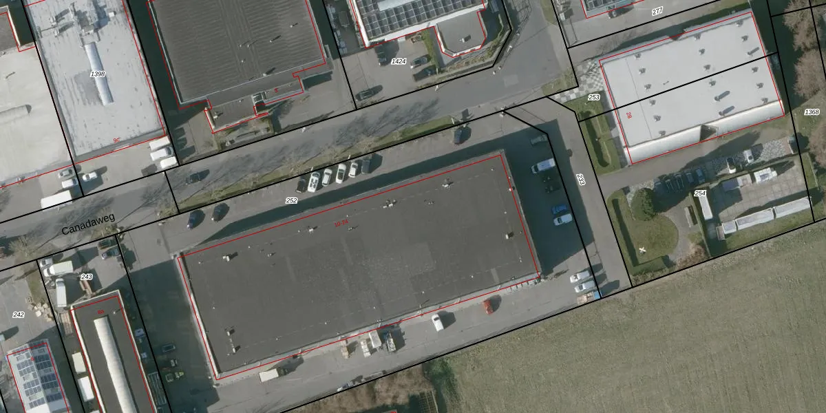 Het perceel waarop Canadaweg 12-c staat heeft een oppervlakte van 5586 m². Dit is een zeer groot perceel. De perceeloppervlakte wordt geregistreerd door het Kadaster. Gedetailleerde informatie over de maten van dit perceel kunt u vinden in het rapport Kadastrale kaart met maatvoering van Canadaweg 12-c.