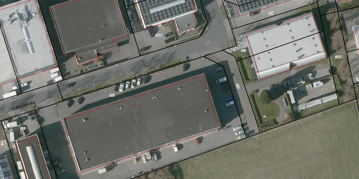 Het perceel waarop Canadaweg 16 staat heeft een oppervlakte van 5586 m². Dit is een zeer groot perceel. De perceeloppervlakte wordt geregistreerd door het Kadaster. Gedetailleerde informatie over de maten van dit perceel kunt u vinden in het rapport Kadastrale kaart met maatvoering van Canadaweg 16.