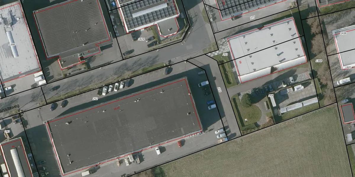 Het perceel waarop Canadaweg 16-a staat heeft een oppervlakte van 5586 m². Dit is een zeer groot perceel. De perceeloppervlakte wordt geregistreerd door het Kadaster. Gedetailleerde informatie over de maten van dit perceel kunt u vinden in het rapport Kadastrale kaart met maatvoering van Canadaweg 16-a.