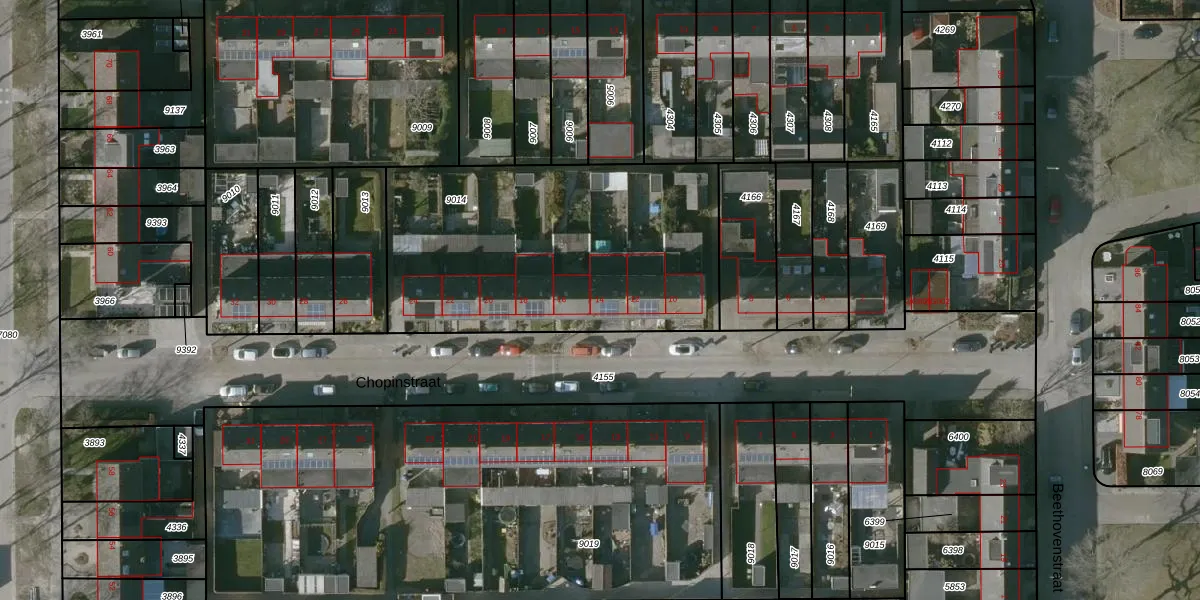 Chopinstraat 14 is gelegen op kadastraal perceel HSR00C9014. Deze kadastrale aanduiding is uniek en wordt gebruikt door het Kadaster om eigendomsrechten en andere zakelijke rechten vast te leggen. Het perceel maakt onderdeel uit van de kadastrale gemeente Halsteren.
