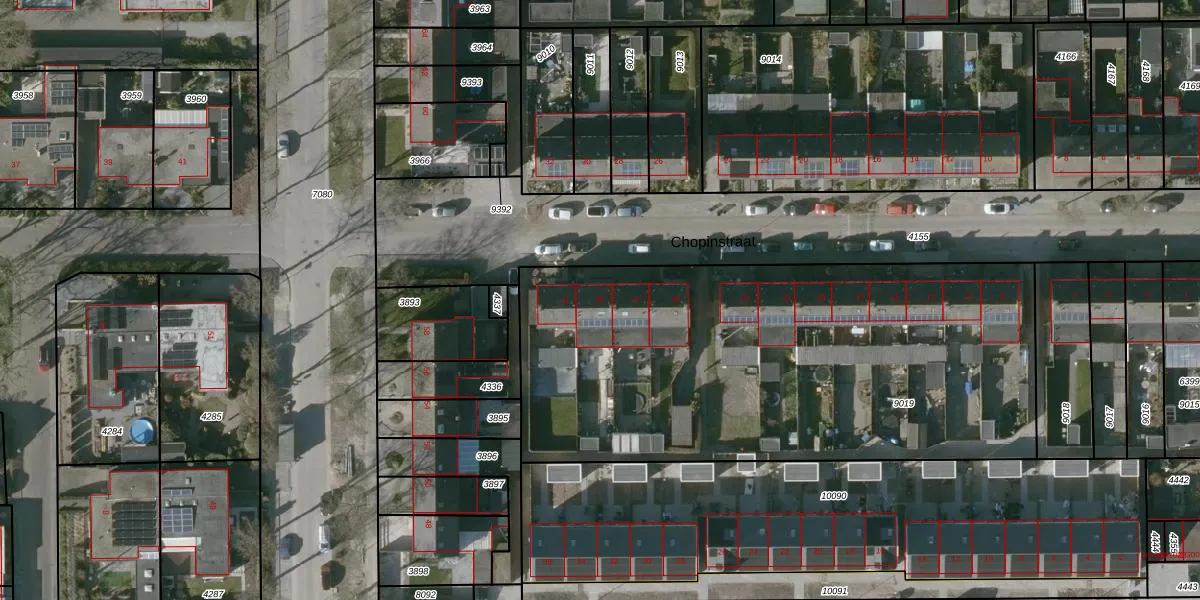 Het perceel waarop Chopinstraat 29 staat heeft een oppervlakte van 2767 m². Dit is een zeer groot perceel. De perceeloppervlakte wordt geregistreerd door het Kadaster. Gedetailleerde informatie over de maten van dit perceel kunt u vinden in het rapport Kadastrale kaart met maatvoering van Chopinstraat 29.