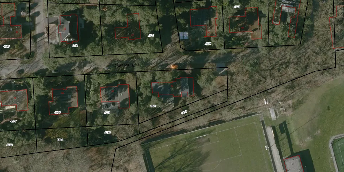Het perceel waarop Daansbergen 32 staat heeft een oppervlakte van 1125 m². Dit is een zeer groot perceel. De perceeloppervlakte wordt geregistreerd door het Kadaster. Gedetailleerde informatie over de maten van dit perceel kunt u vinden in het rapport Kadastrale kaart met maatvoering van Daansbergen 32.
