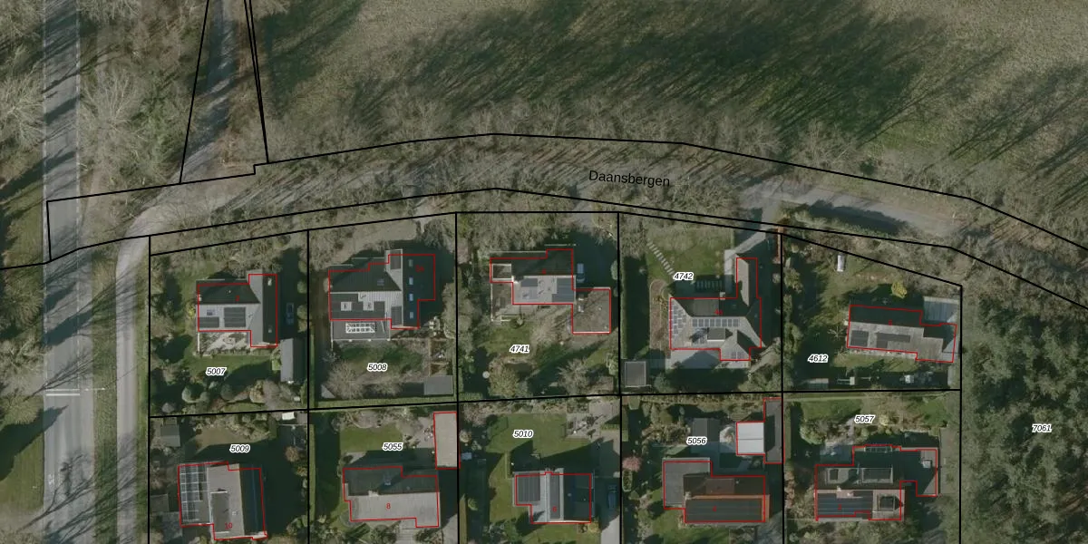 Het perceel waarop Daansbergen 4 staat heeft een oppervlakte van 1021 m². Dit is een zeer groot perceel. De perceeloppervlakte wordt geregistreerd door het Kadaster. Gedetailleerde informatie over de maten van dit perceel kunt u vinden in het rapport Kadastrale kaart met maatvoering van Daansbergen 4.
