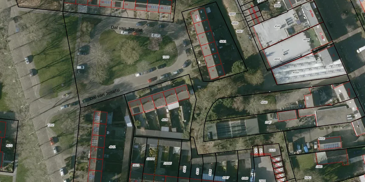 Dal van Josafat 5 is gelegen op kadastraal perceel HSR00C4639. Deze kadastrale aanduiding is uniek en wordt gebruikt door het Kadaster om eigendomsrechten en andere zakelijke rechten vast te leggen. Het perceel maakt onderdeel uit van de kadastrale gemeente Halsteren.