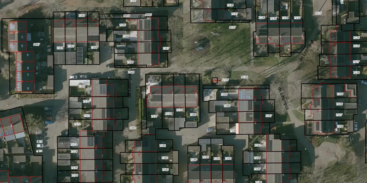 Gebruik de zoekbalk of klik op een perceel voor informatie over de adressen binnen dit perceel.