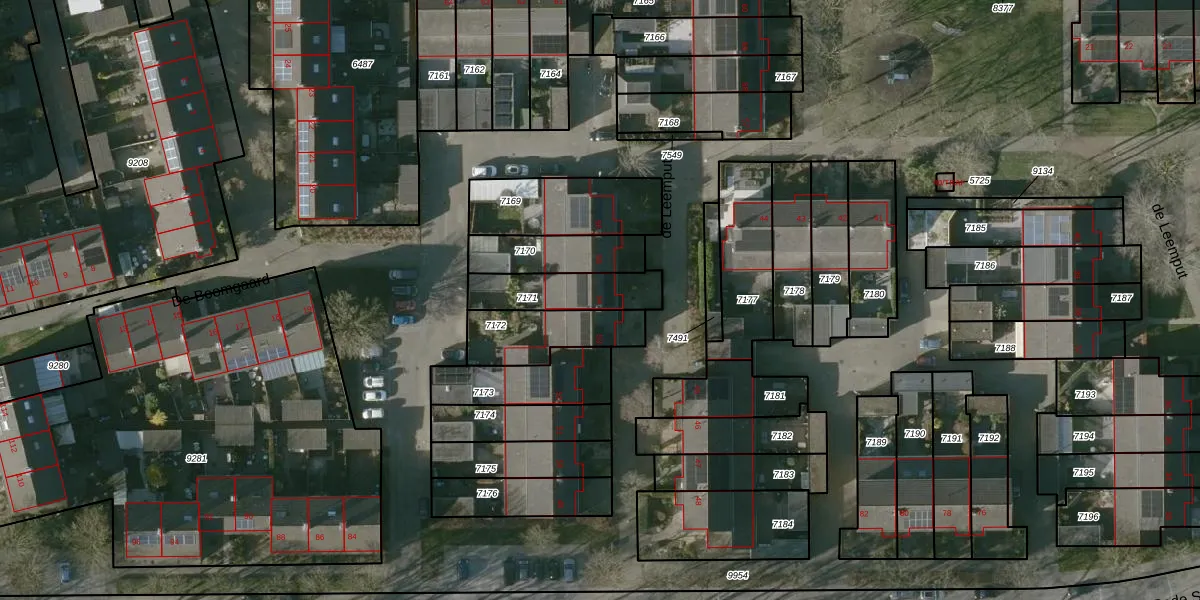 Gebruik de zoekbalk of klik op een perceel voor informatie over de adressen binnen dit perceel.