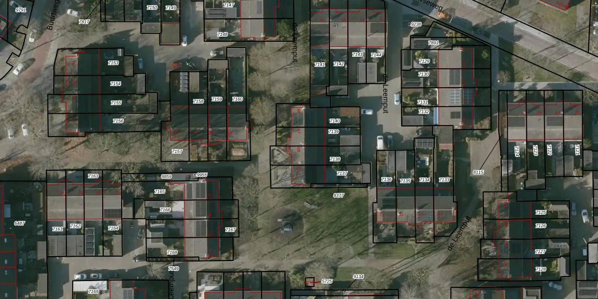 Het perceel waarop de Leemput 66 staat heeft een oppervlakte van 188 m². Dit is een middelgroot perceel. De perceeloppervlakte wordt geregistreerd door het Kadaster. Gedetailleerde informatie over de maten van dit perceel kunt u vinden in het rapport Kadastrale kaart met maatvoering van de Leemput 66.
