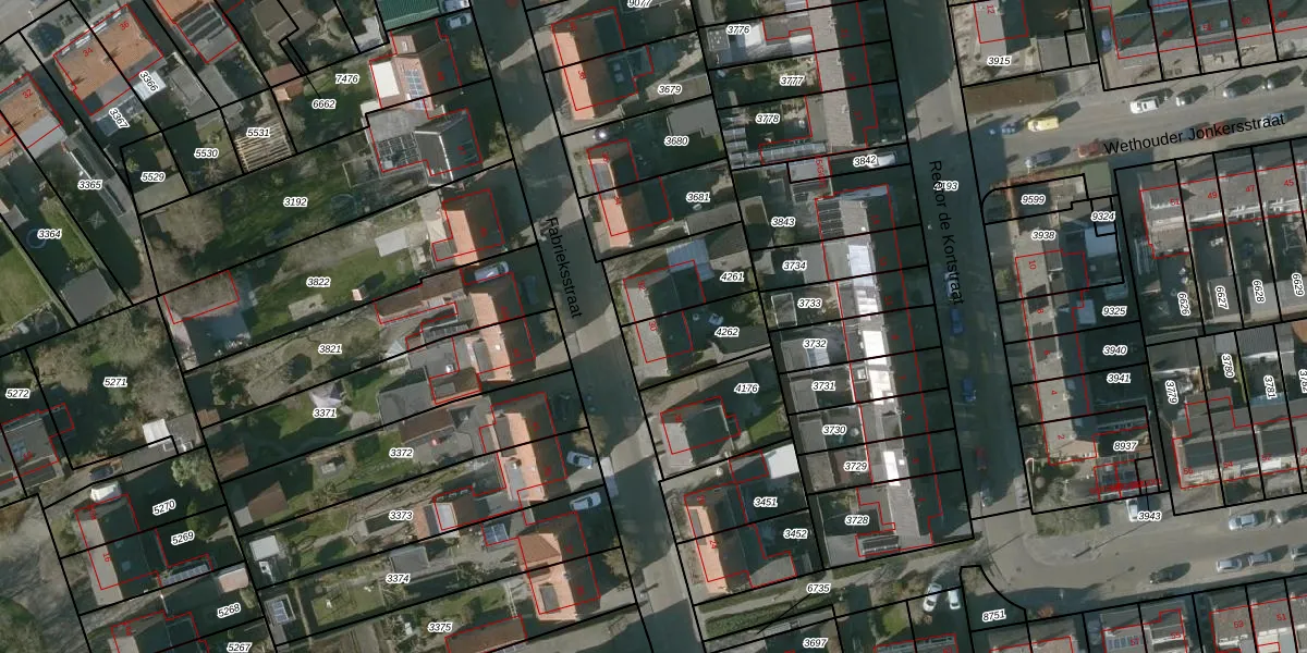 Gebruik de zoekbalk of klik op een perceel voor informatie over de adressen binnen dit perceel.