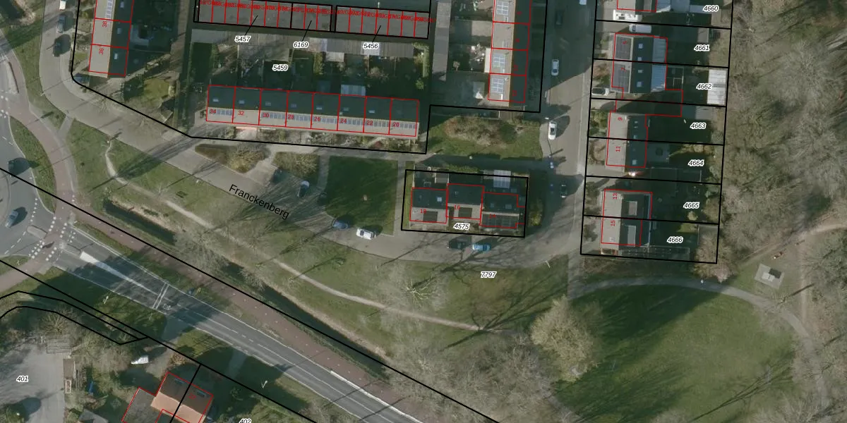 Het perceel waarop Franckenberg 18 staat heeft een oppervlakte van 418 m². Dit is een groot perceel. De perceeloppervlakte wordt geregistreerd door het Kadaster. Gedetailleerde informatie over de maten van dit perceel kunt u vinden in het rapport Kadastrale kaart met maatvoering van Franckenberg 18.