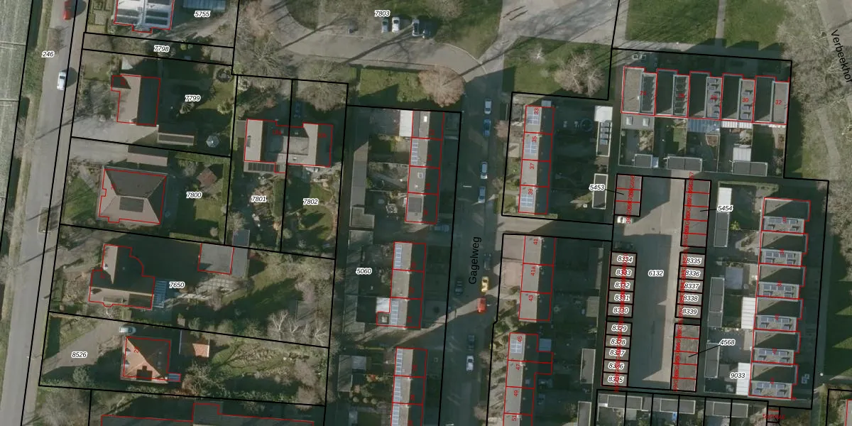 Het perceel waarop Gagelweg 18 staat heeft een oppervlakte van 2237 m². Dit is een zeer groot perceel. De perceeloppervlakte wordt geregistreerd door het Kadaster. Gedetailleerde informatie over de maten van dit perceel kunt u vinden in het rapport Kadastrale kaart met maatvoering van Gagelweg 18.