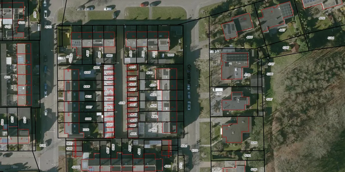 Griegstraat 9 is gelegen op kadastraal perceel HSR00C4379. Deze kadastrale aanduiding is uniek en wordt gebruikt door het Kadaster om eigendomsrechten en andere zakelijke rechten vast te leggen. Het perceel maakt onderdeel uit van de kadastrale gemeente Halsteren.