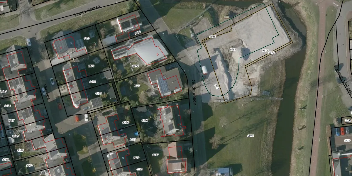 Het perceel waarop Guldenroede 9 staat heeft een oppervlakte van 737 m². Dit is een groot perceel. De perceeloppervlakte wordt geregistreerd door het Kadaster. Gedetailleerde informatie over de maten van dit perceel kunt u vinden in het rapport Kadastrale kaart met maatvoering van Guldenroede 9.